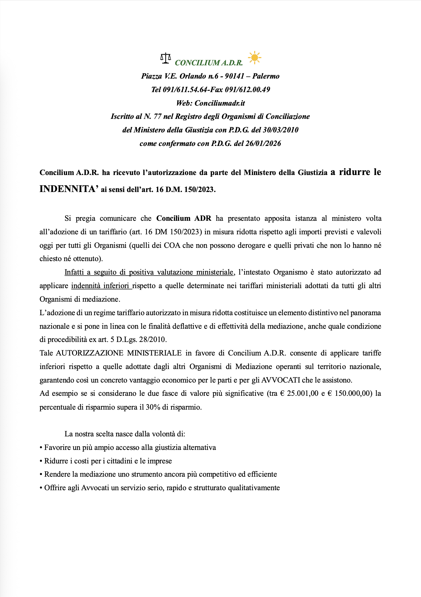 Concilium A.D.R. è un Organismo di Mediazione accreditato dal Ministero della Giustizia con esperienza ultradecennale nel campo delle A.D.R., formato da un team di mediatori/avvocati e mediatori in altre discipline di elevata professionalità. Le nostre Sedi sono diffuse su tutto il territorio siciliano. Per presentare la Tua istanza o ricevere ogni tipo di informazione contatta la nostra sede principale sita in Palermo, Piazza Vittorio Emanuele Orlando n. 6 (di fronte al Tribunale).